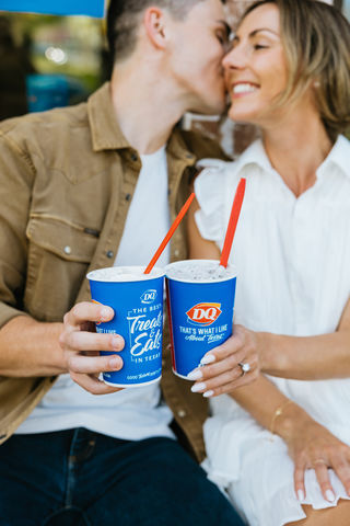 Future Mr. & Mrs. Blizzard sharing a Blizzard and kiss at Texas Dairy Queen - Photo credit: Heather Buckley Photography